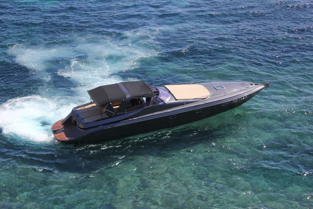 El Tullio Abbate 42 tiene un toldo bimini muy grande que se puede dejar puesto incluso navegando a gran velocidad, algo muy importante para esas largas jornadas