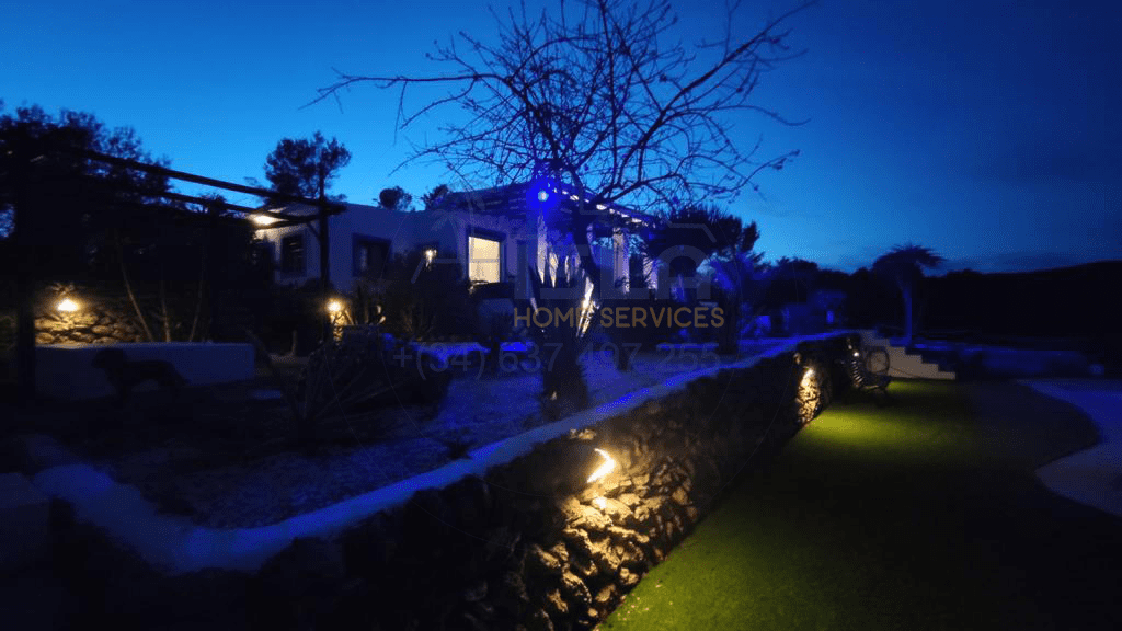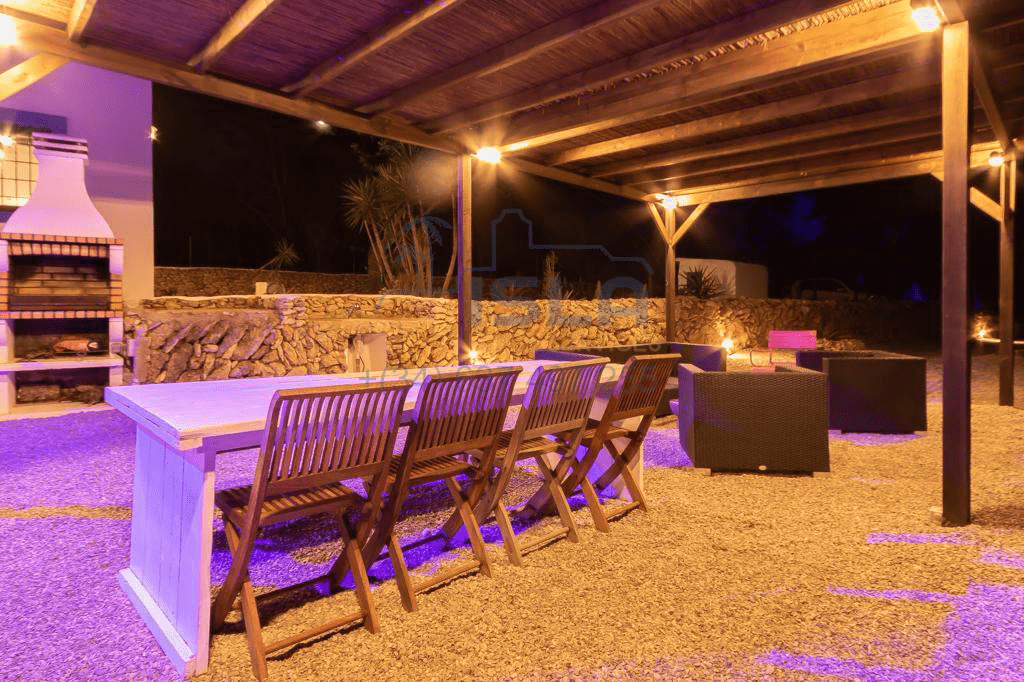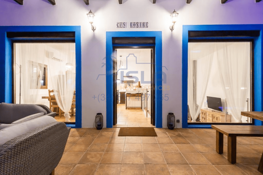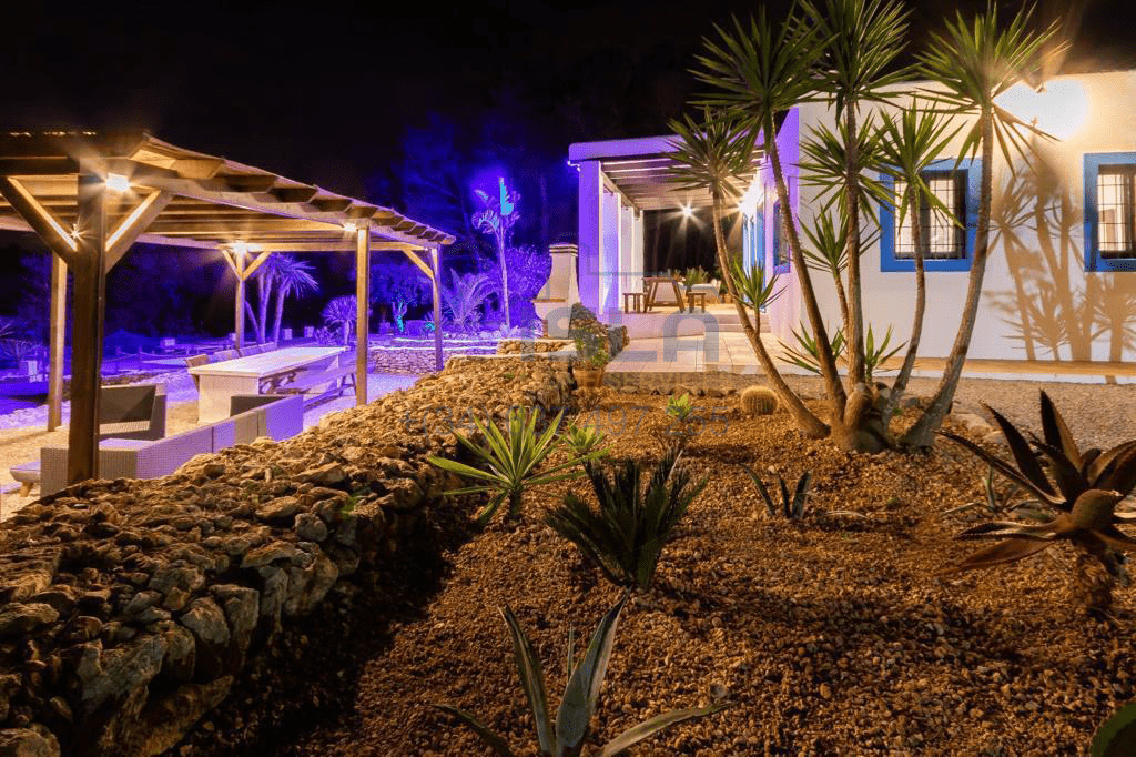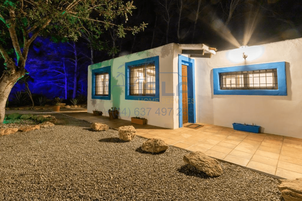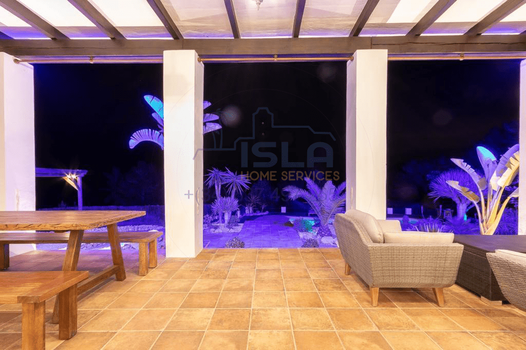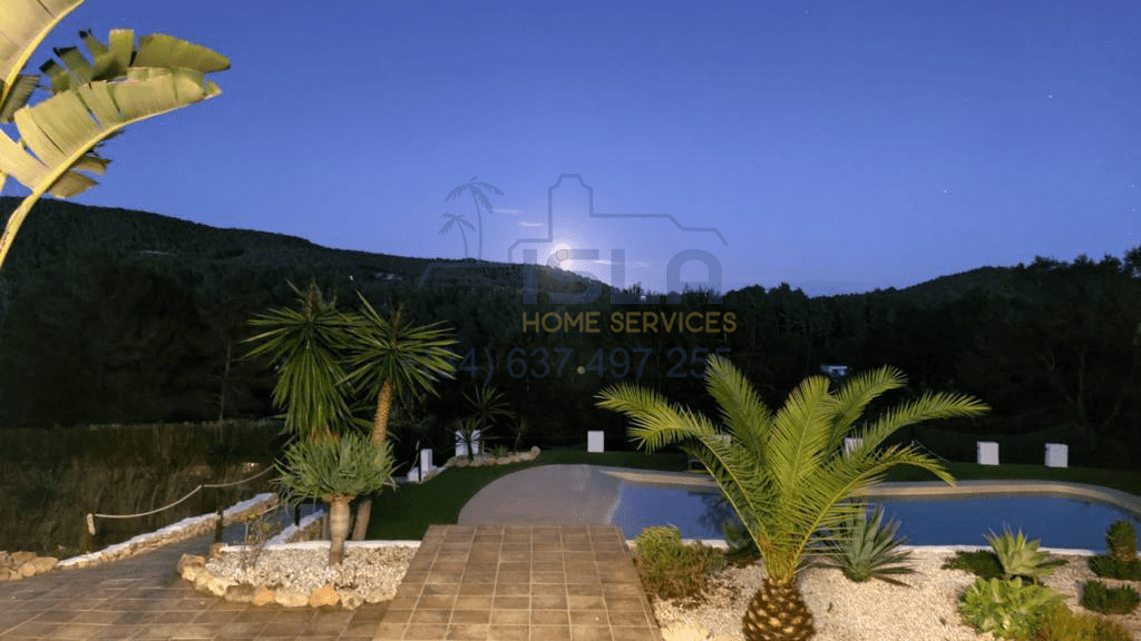 Exclusiva casa de estilo ibicenco, con blancas paredes que contrastan con el cielo azul y el verde de los campos que la rodean.. situada en el centro de la isla en un paraje incomparable, con vistas a un precioso valle y las montañas, en lo que podríamos llamar un paraíso de naturaleza típica de la isla para quien quiera disfrutar de absoluta tranquilidad en una de las zonas más auténticas y menos explotadas turísticamente, pero a la vez muy cerca de todo: de la playa, los pueblos de Santa Gertrudis, San Rafael y San Mateo. A tan sólo 15 minutos de Ibiza.