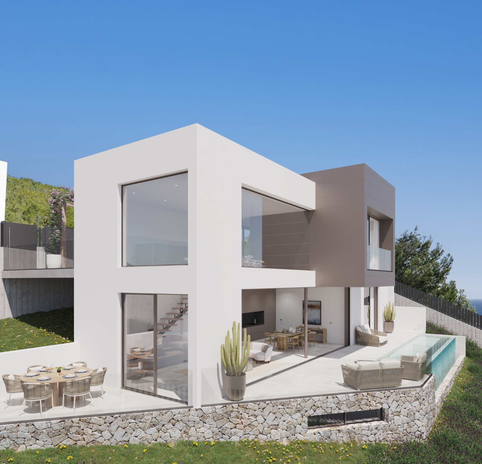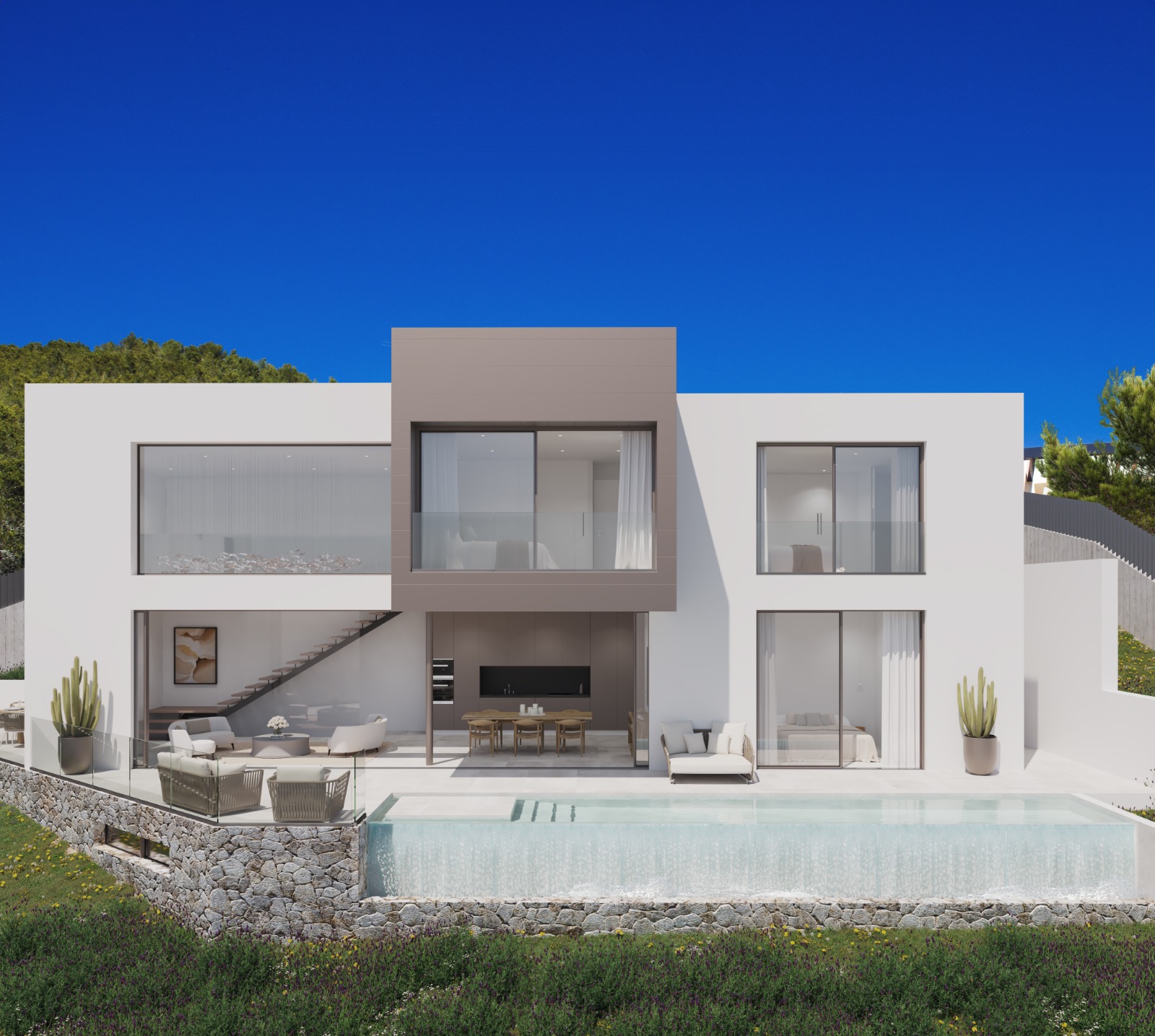 En una de las zonas más exclusivas de Ibiza, avanza la construcción de esta impresionante villa de lujo. Desde el puerto deportivo de Marina Botafoch se divisa Cas Mut, elegantemente situado en la ladera sobre Ibiza Town.